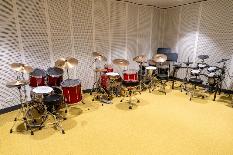 1x piano, 2x gitaarversterker, 1x basversterker, 1x synthesizer, 1x keyboard, 1x drumstel, zanginstallatie